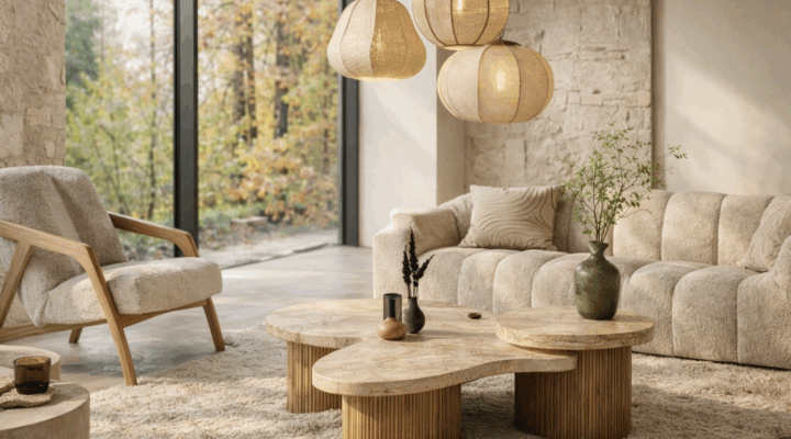 Ronde vormen, natuursteen, linnen en licht. De trend Sculpted by Nature brengt de kalmte van buiten naar binnen — en bij Woonmall Alexandrium zie je precies hoe dat werkt.